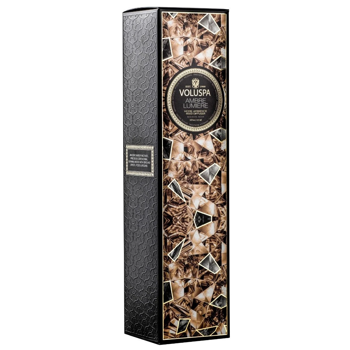 Voluspa Ambre Lumiere Diffuser: The aromatic radiance of this timeless scent instills a sense of calm, welcome and wellbeing. Reflect warmth in home and in spirit with Ambre Lumiere’s mystical, meditative blend – based on ancient amber incense, precious ceremonial burning wood, ground spices, pods and resins. Arouse the senses and soothe the soul.