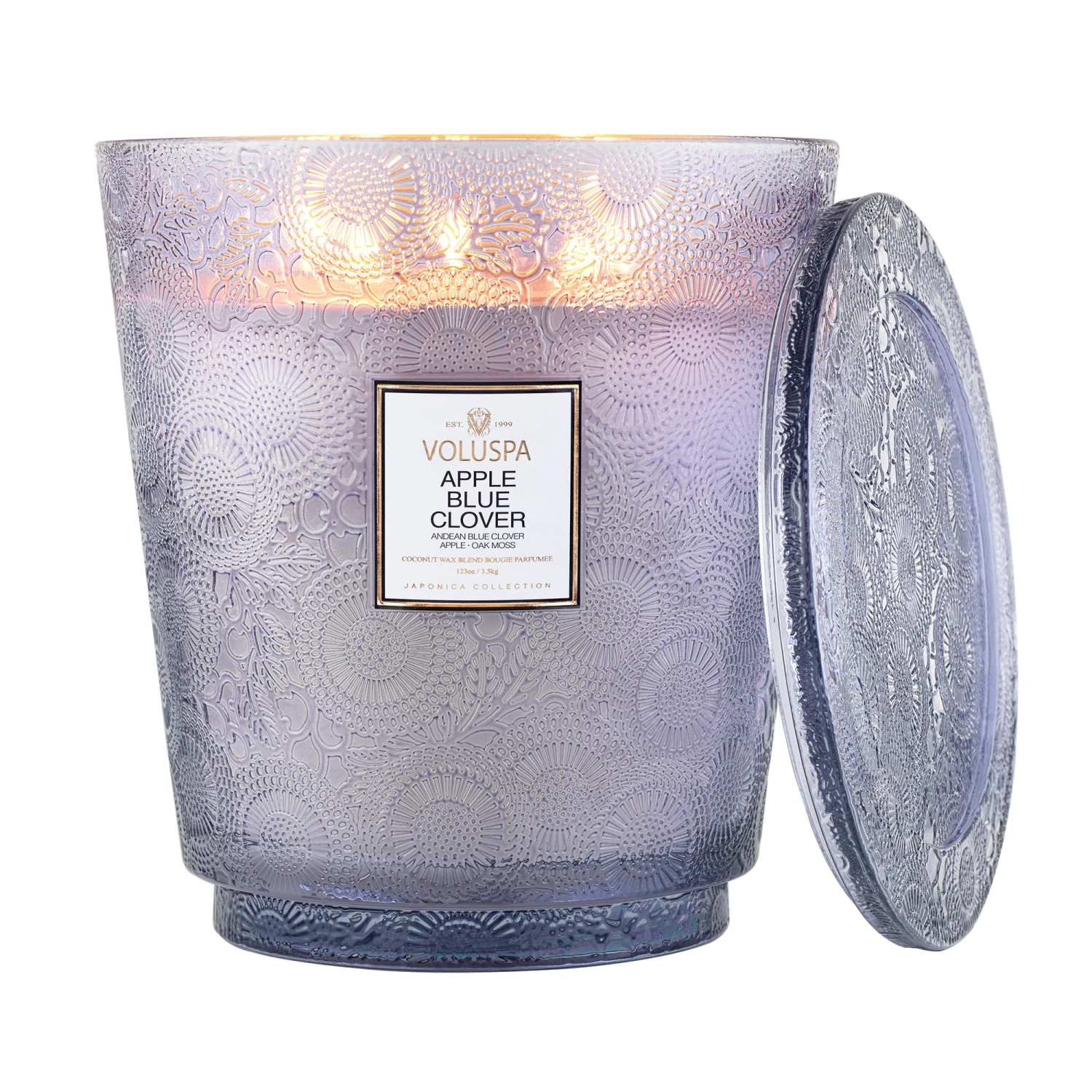 Voluspa’s unique coconut wax blend is hand-poured into a 123 oz. embossed glass vessel and topped with a matching lid that keeps the candle dust-free when not in use. Our five wicks allow you to enjoy fragrance throw for 250 hours. Our candles are hand-poured in the United States and feature our proprietary, clean-burning coconut wax blend and 100% natural wicks. Our products are free of phthalates, pesticides, parabens and sulfates and are never tested on animals. Up-cycle this best seller into a keepsake after the last burn.