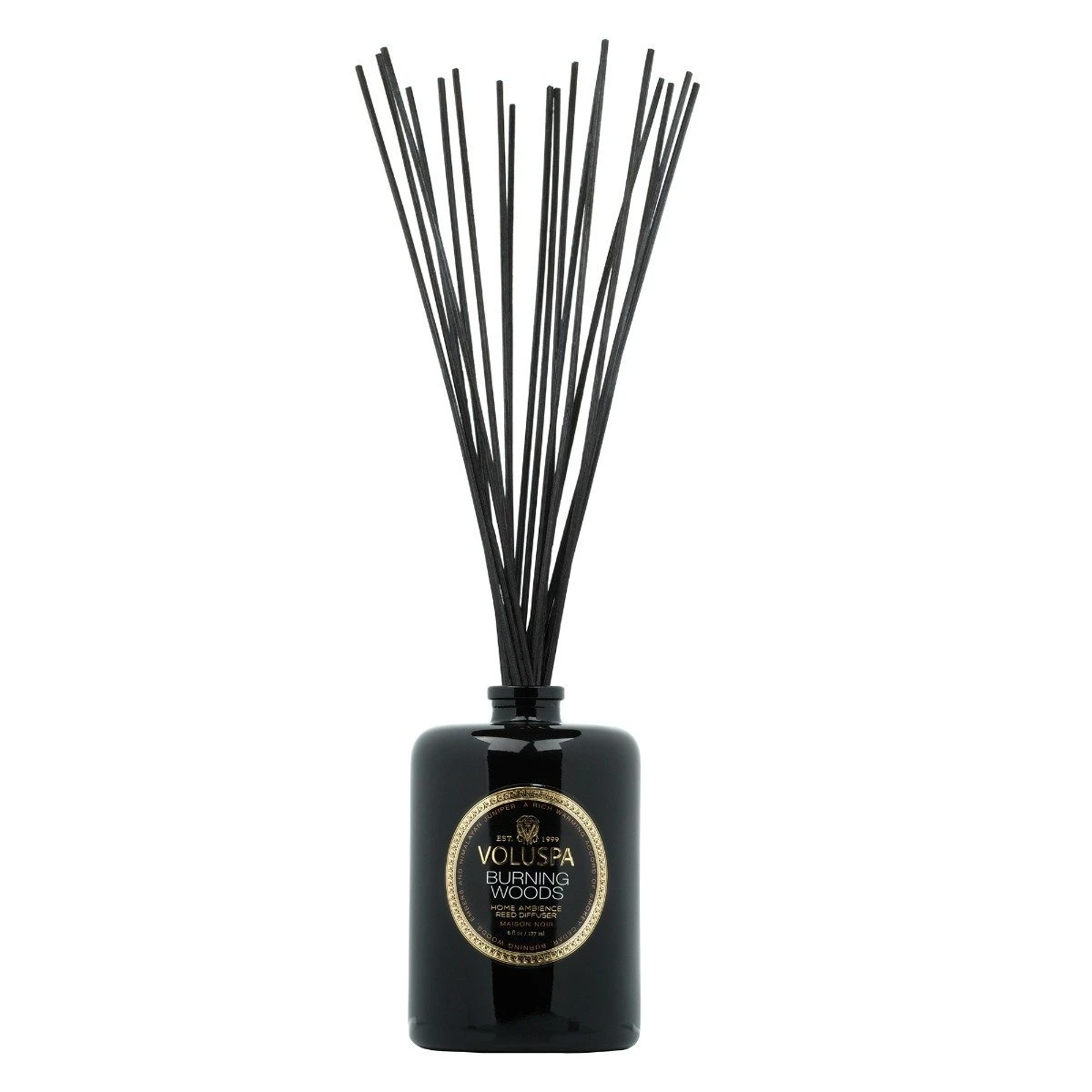 Voluspa Burning Woods Diffuser is a rich warming accord with top notes of aromatic cut wood from fir balsam and Himalayan juniper, freshly gathered on a glowing hearth of herbal sage, smokey cade and burning woods. Enhanced by enticing tonalites of embers, warm patchouli mist and cedarwood.