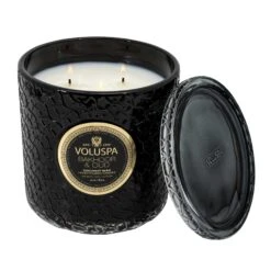 Voluspa’s unique coconut wax blend is hand-poured into a 4 oz. metal vessel adorned in Maison pattern, and topped with a matching lid that keeps the candle dust-free when not in use. Our single wick allows you to enjoy fragrance throw for 25 hours. Our candles are hand-poured in the United States and feature our proprietary, clean-burning coconut wax blend and 100% natural wicks. Our products are free of phthalates, pesticides, parabens and sulfates and are never tested on animals. Up-cycle this best seller into a keepsake after the last burn.