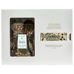 Voluspa’s unique coconut wax blend is hand-poured into a variety of vessels. Our candles are hand-poured in the United States and feature our proprietary, clean-burning coconut wax blend and 100% natural wicks. Our products are free of phthalates, pesticides, parabens and sulfates and are never tested on animals. Up-cycle these best sellers into keepsakes after the last burn. This fragrance collection includes (left to right): Decorative Mini Tin, 3 Wick Octagon Tin, Boxed Corta Maison Glass Candle, Fragrant Reed Diffuser and 3-Wick Grande Maison Glass Candle.