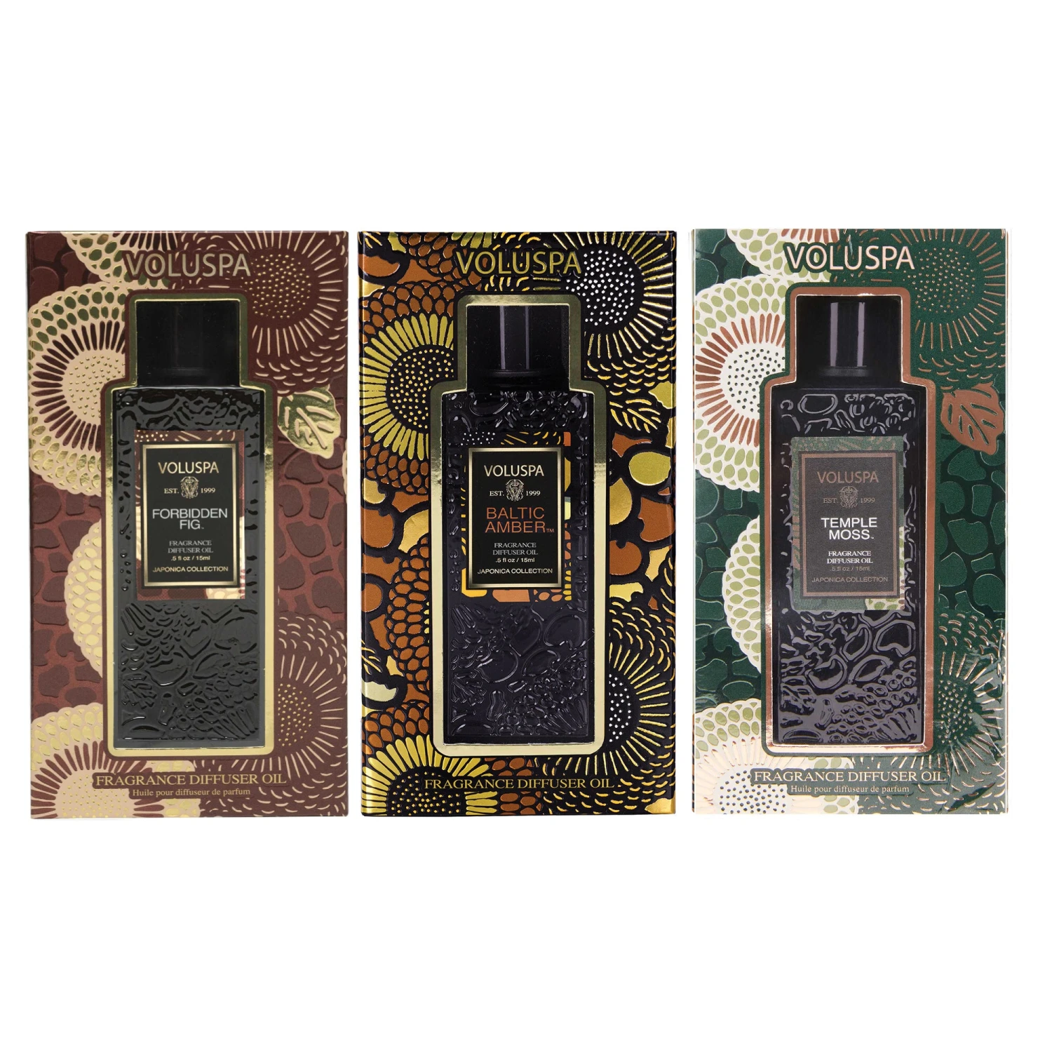 Bundle Includes: Forbidden Fig, Baltic Amber, and Temple Moss.