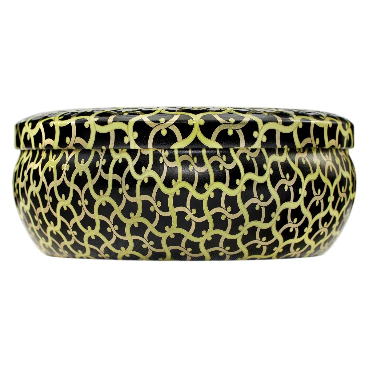 Voluspa 3 Wick tins takes on a new look and feel adorned in the Maison pattern emboss. A graceful urn-shaped container featuring three wicks creates a generous melted wax pool and ample fragrance throw while burning. This 12 ounce tin makes a statement on its own, and includes a coordinating lid, which can be used to extinguish the flame.