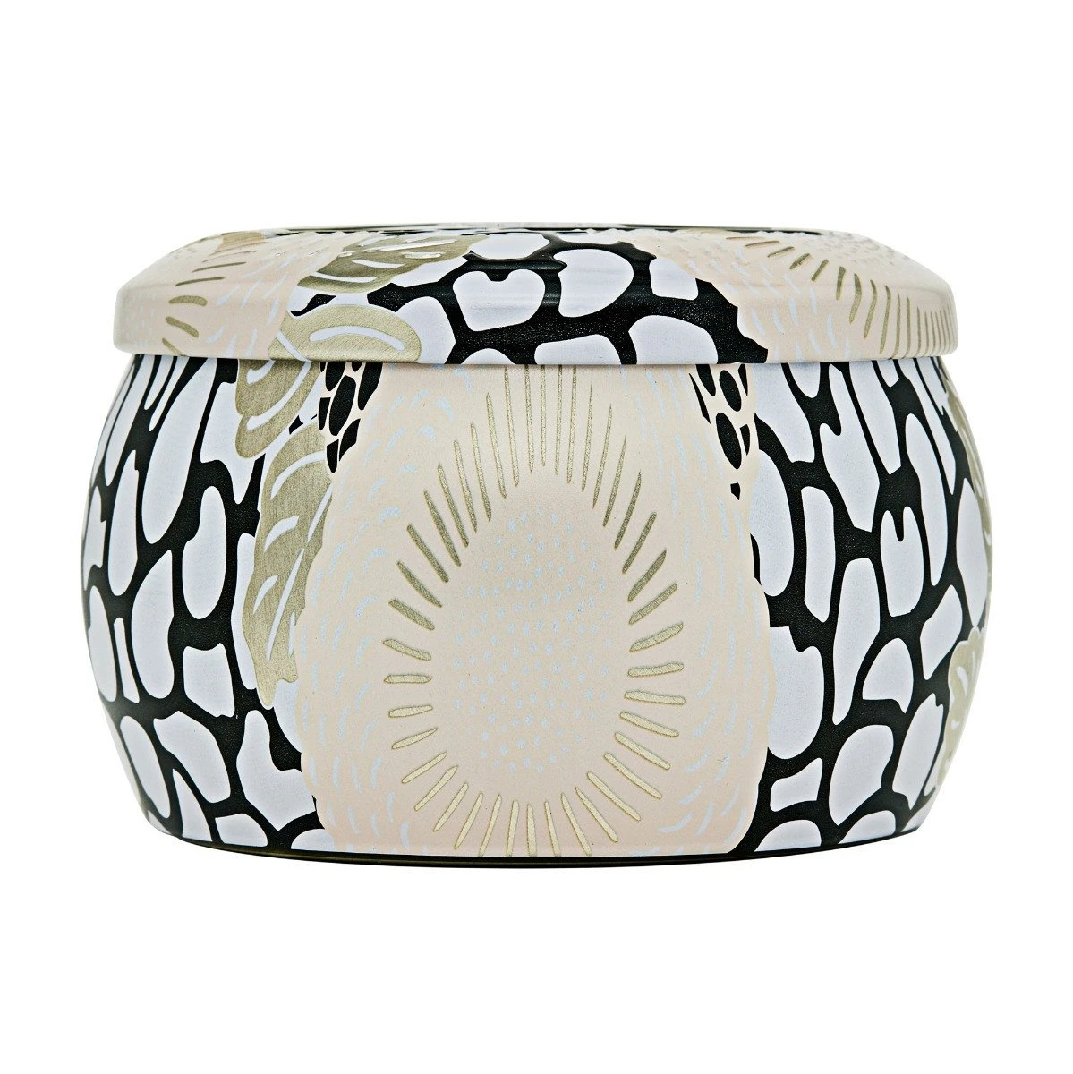 Voluspa Voluspa Jasmine Midnight Blooms Travel Tin Candle: The rising moon awakens the blooms from their slumber with spells of Italian Bergamot and Moonflower. Arousing notes of Egyptian jasmine and tuberose overtake the senses, illuminating their long stems and arching petals. Blossoming with a bravado of dune grass and mango wood, the ladies of the night arrive in full bloom, sending fragrance throughout the night air like sweet secrets kissing the ear. A bold fragrance, as intense as its beauty.