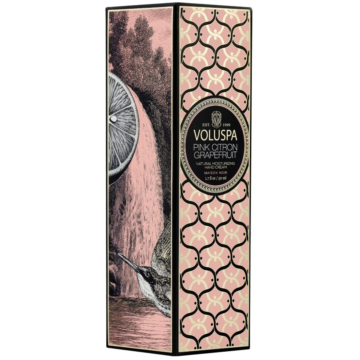 Voluspa Pink Citron Grapefruit Hand Cream is like puckering up for a kiss from the sun. Fall in love with an explosion of exuberantly ripe pink grapefruit and succulent starfruit, flourishing in a natural orchard habitat. Caressed by wild rose bushes and lush cassis berry vines. Pink Citron Grapefruit is a ray of light and positively mouth-watering. Let the sunshine in.