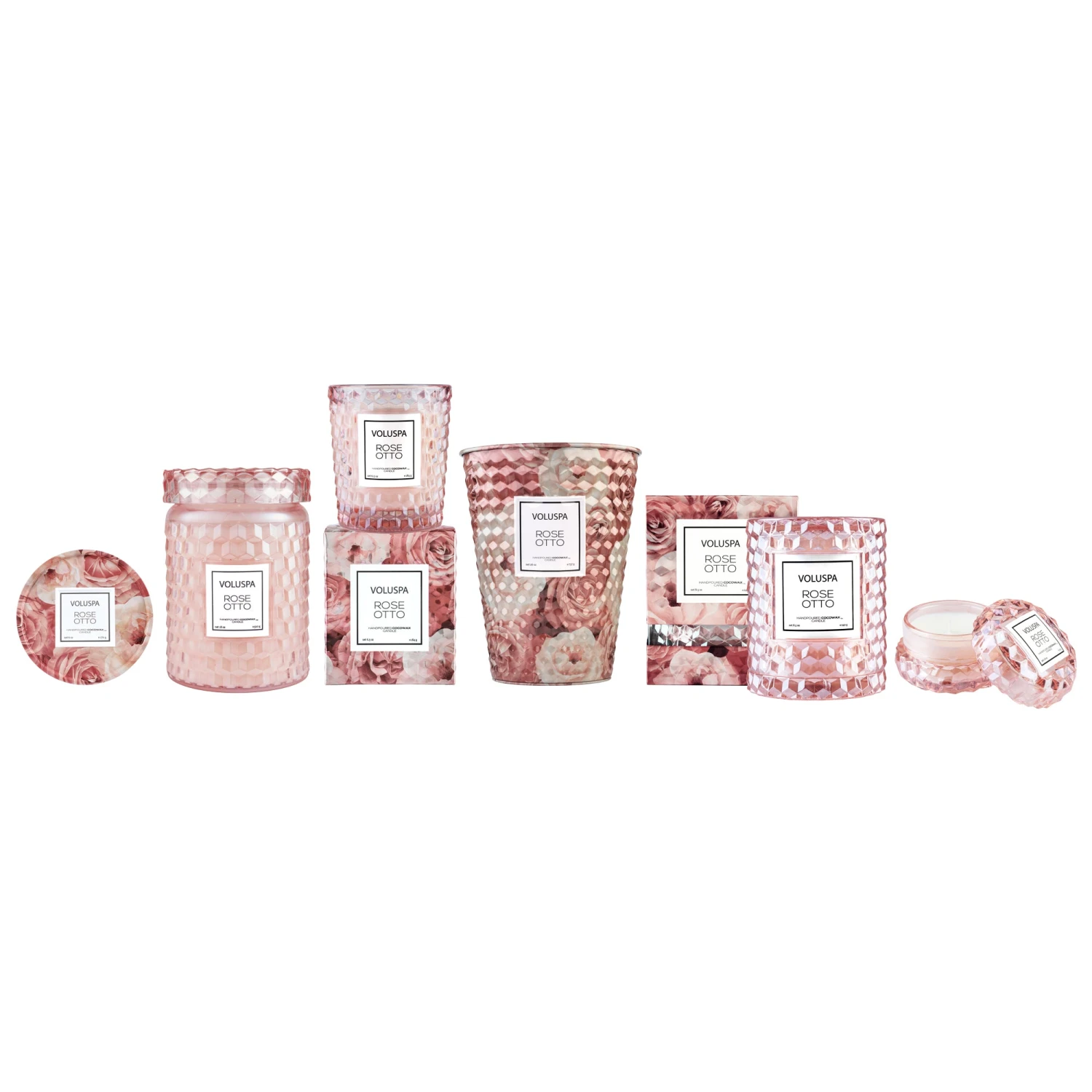 Voluspa’s unique coconut wax blend is hand-poured into a variety of vessels. Our candles are hand-poured in the United States and feature our proprietary, clean-burning coconut wax blend and 100% natural wicks. Our products are free of phthalates, pesticides, parabens and sulfates and are never tested on animals. Up-cycle these best sellers into keepsakes after the last burn. This fragrance collection includes (left to right): 6 oz. Tin Candle, Large Jar Candle, Boxed Classic Textured Glass Candle, 2 Wick Tin Table Candle, Boxed Icon Cloche Textured Glass Candle & Macaron Candle.
