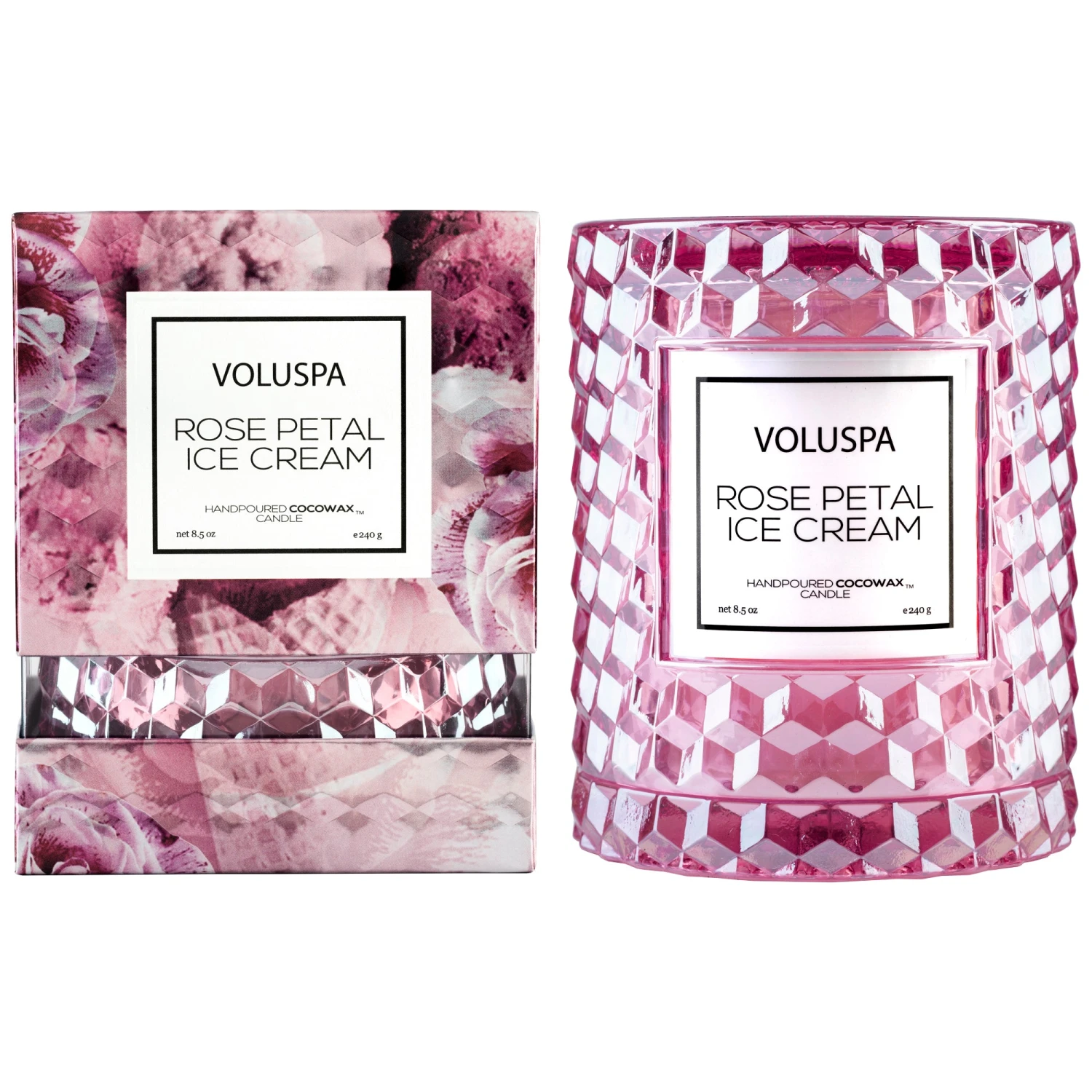 A confectioner’s twist on a classic Rose scent, this heady aroma of Sugared Rose Petals swirl with tart Raspberry, Almond, Marshmallow, and Vanilla Bean Ice Cream goes well beyond a childhood treat.