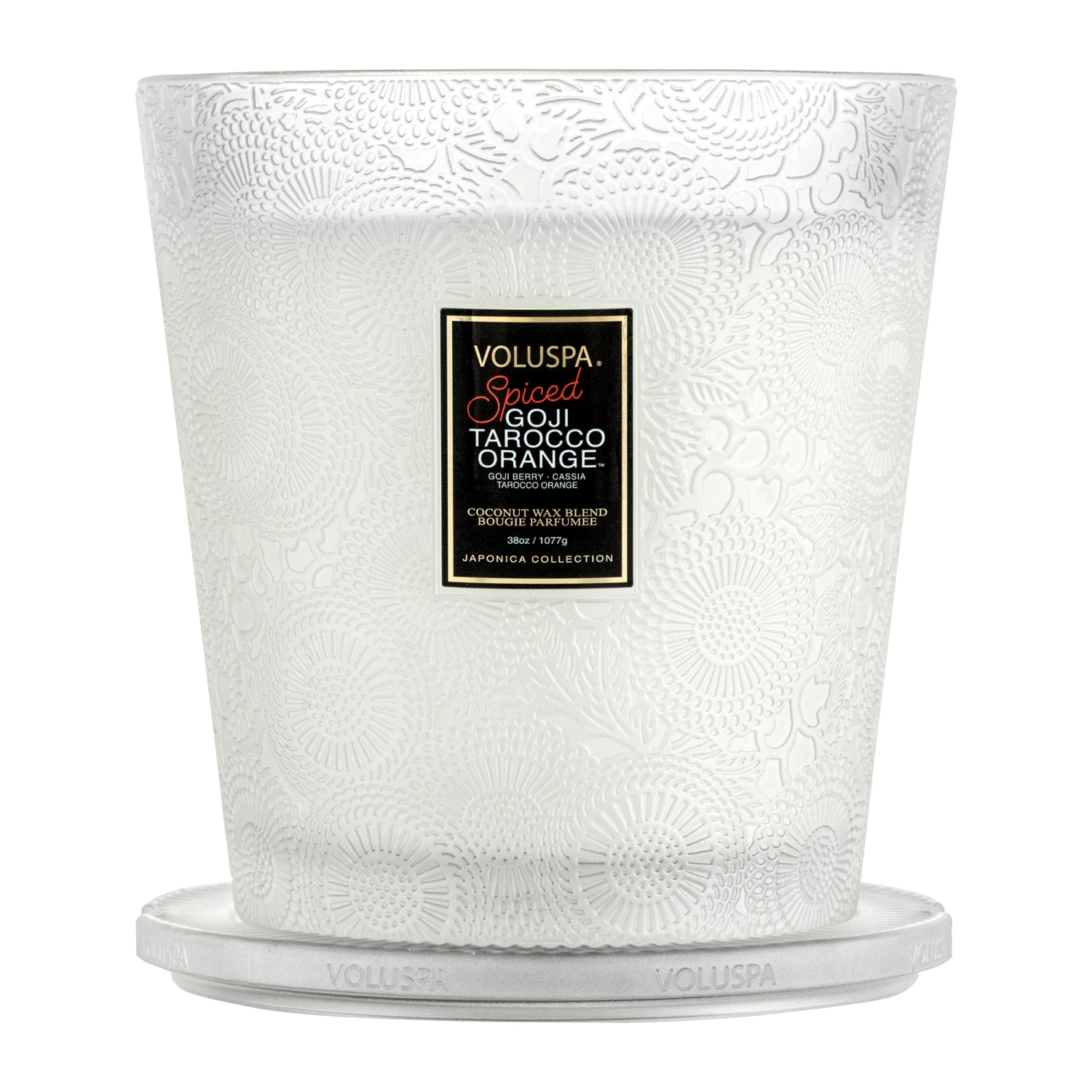 Voluspa’s unique coconut wax blend is hand-poured into a 38Â oz. embossed glass jar with lid that keeps your candle dust free when not in use. Our three wicks allow you to enjoy fragrance throw for 80 hours. Our candles are hand-poured in the United States and feature our proprietary, clean-burning coconut wax blend and 100% natural wicks. Our products are free of phthalates, pesticides, parabens and sulfates and are never tested on animals. Up-cycle this best seller into a keepsake after the last burn.