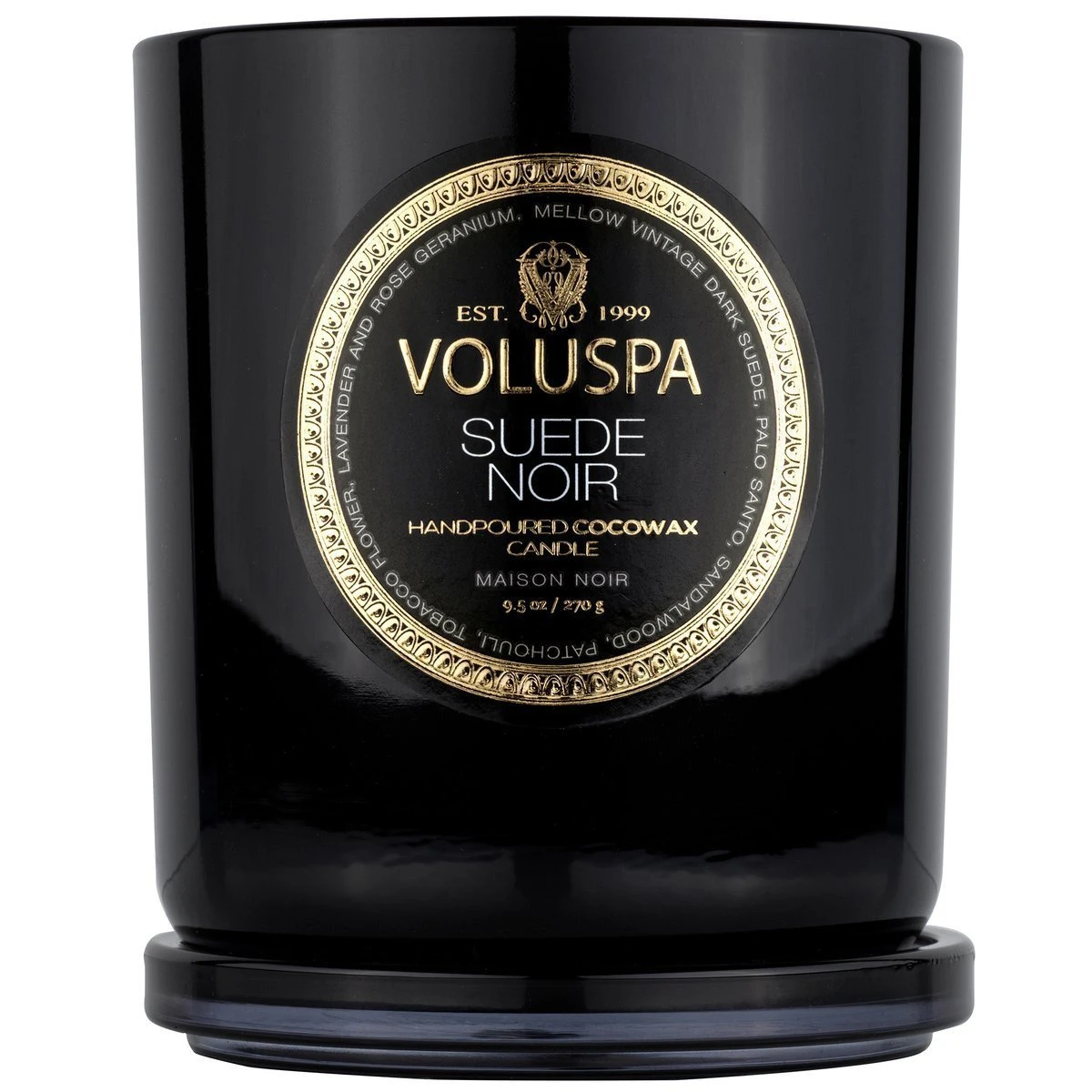 Voluspa Suede Noir Candle: a shaded embrace in a lush excursion of complex, yet smooth sensuality. Creating a profusion of fleeting scents – Vintage Dark Suede, burning Palo Santo, traces of Patchouli, trails of smoky Hemp & Tobacco and the softly rising Vanilla moon – Suede Noir comes together delicately in a hushed, mellifluous voice, reminiscent of old vinyl records. Play it again and again.s delicious sparkling brut champagne mingled with hints of vanilla and barrel oak.